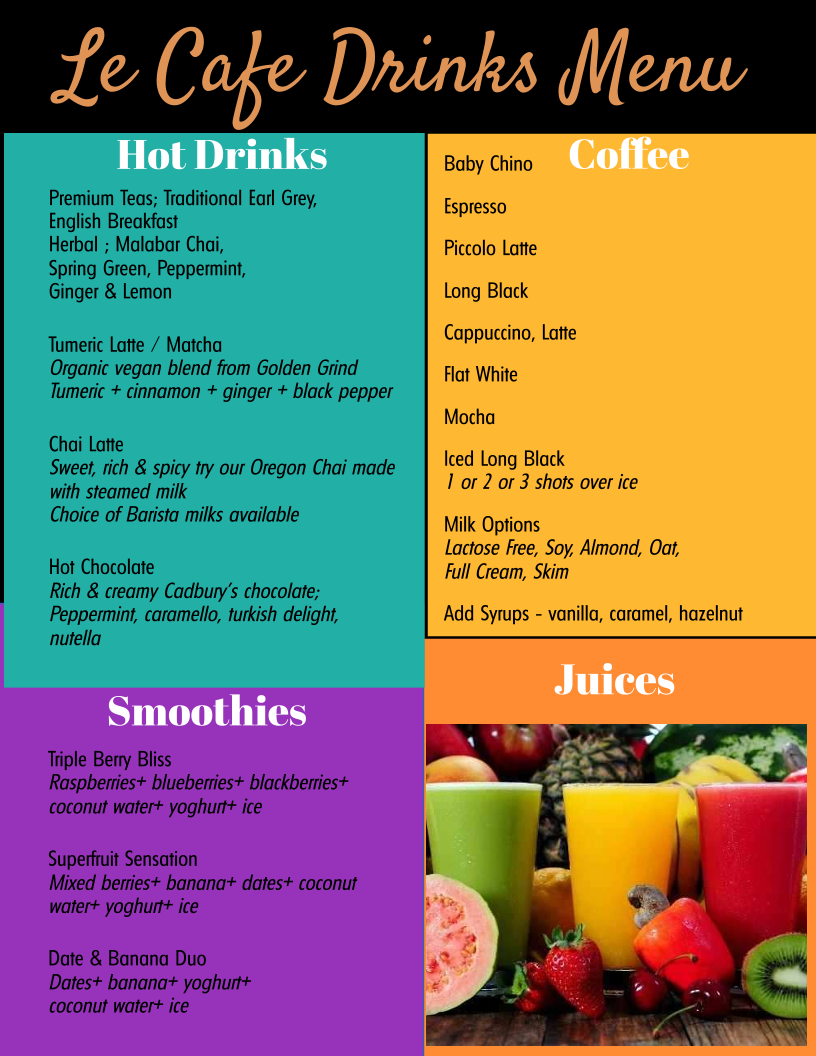 Located in the heart of East Launceston, Le Cafe on St George offers a delightful array of culinary experiences that caters to every palate. Guests can indulge in freshly prepared smoothies, such as the Triple Berry Bliss and Date & Banana Duo, designed to refresh and rejuvenate. For juice lovers, the Mix & Match option allows personalized creations from a vibrant selection of fruits and vegetables.